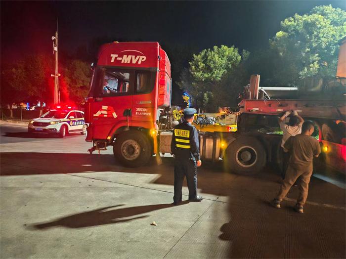 今年以来,该企业承揽某核电站大型施工设备运输任务,货物体积大、路线长,运输过程难度较大。数月前,企业车辆首次经中队辖区时因路线不熟发生偏差,执法人员及时提供指引并安全护送至安全路段,给驾驶员留下深刻印象。