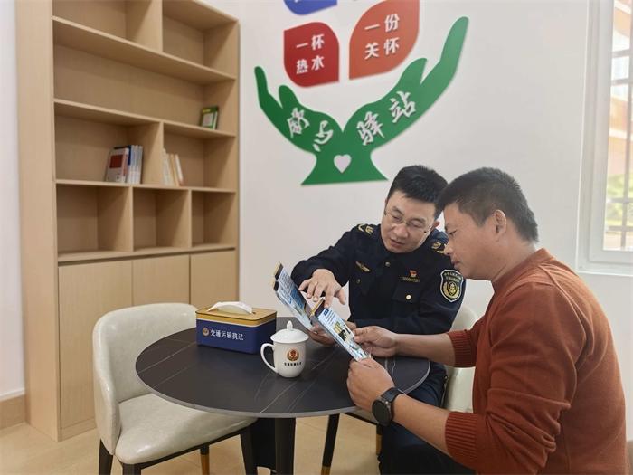 事后,执法人员主动邀请企业负责人及驾驶员至中队"司机之友"休息区,开展针对性普法交流。围绕大件运输许可办理、不同路段限宽标准、夜间行车安全、突发情况规范处置等内容进行讲解,并结合常见运输误区进行提示。交流中,执法人员认真听取驾驶员关于货运通行的意见建议,详细记录诉求。"这些知识非常实用,跑大件运输就怕遇到问题无处咨询,你们是真心为我们着想。"驾驶员在交流后感慨道。