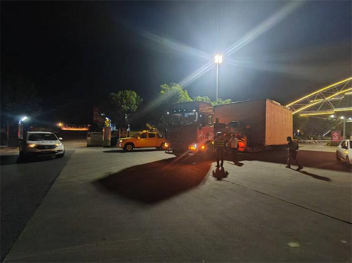 12月1日晚,类似情况再次发生。该企业一辆超宽大件运输车辆在常山高速收费站因操作失误卡滞,无法前行。接到收费站通报后,常山中队执法人员迅速赶到现场,经仔细勘查车辆与道口布局,协同收费站调整设备,引导车辆缓慢安全通过,全程未影响其他车辆通行。